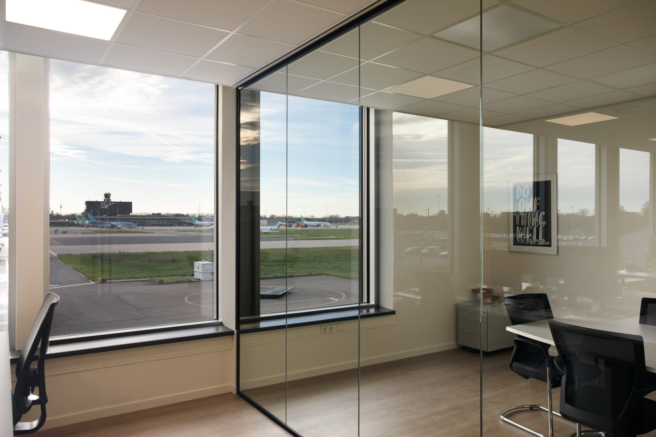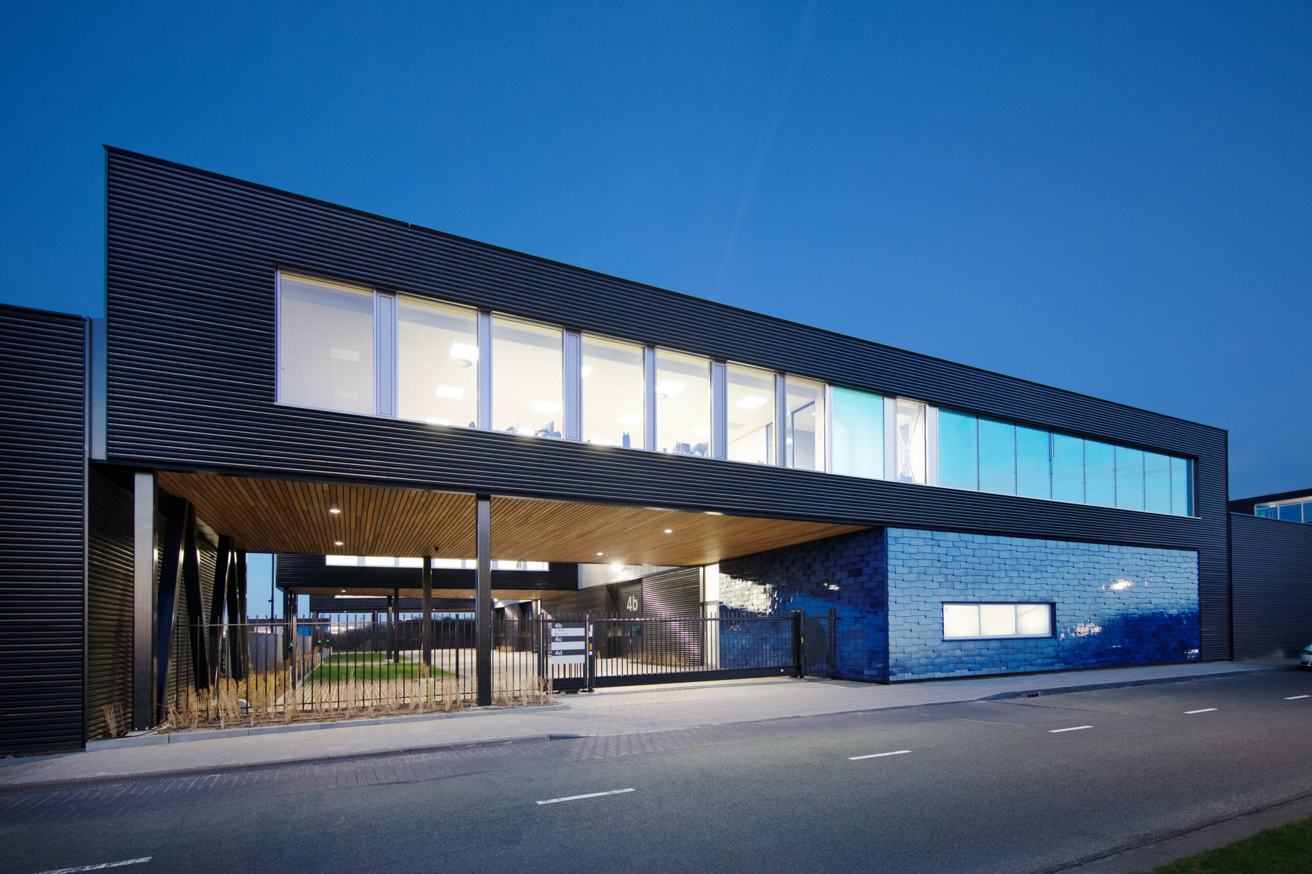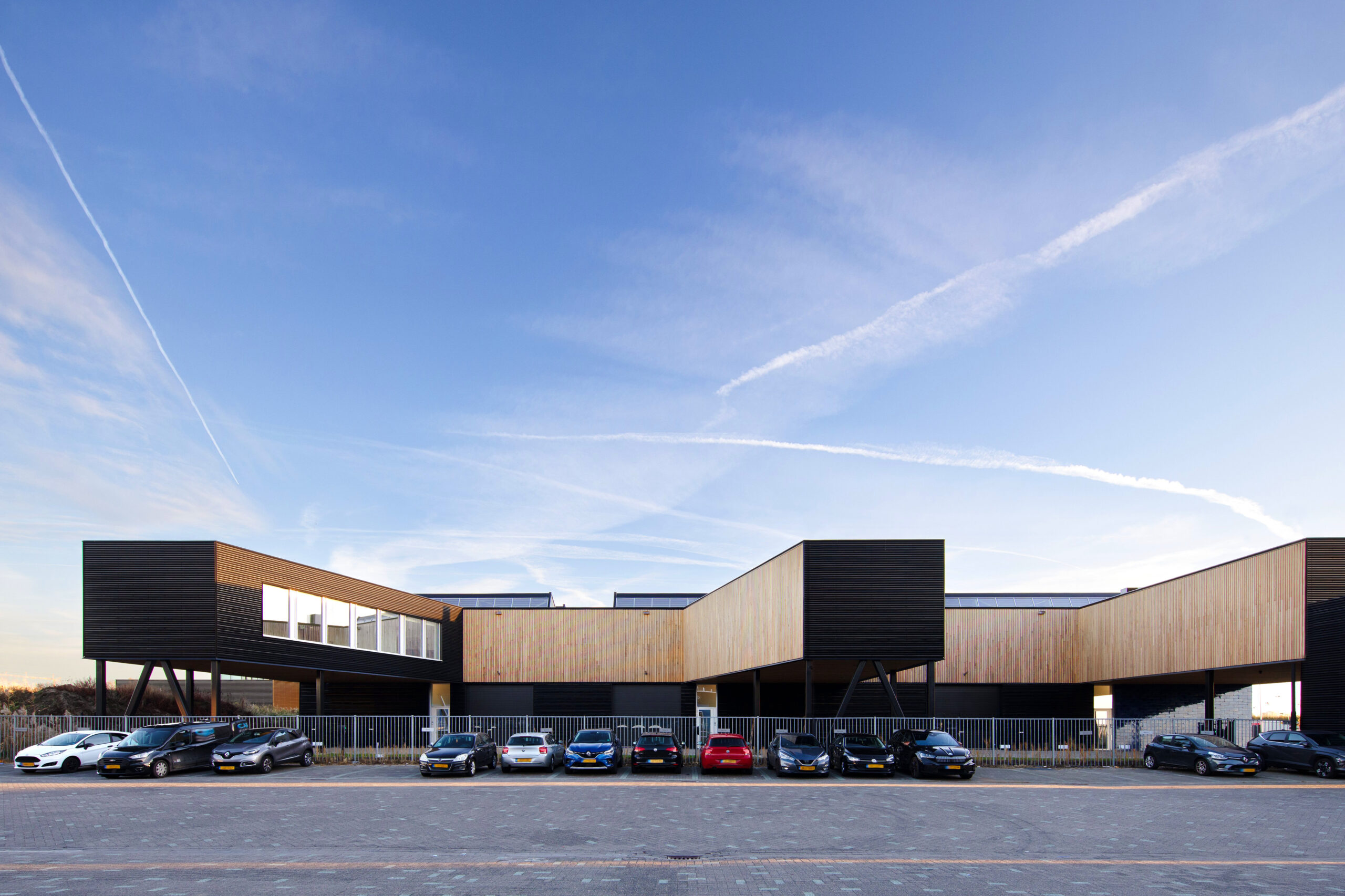 Sinds 1995 ontwerpen wij met veel plezier hoogwaardige bedrijfspanden voor de ontwikkelaar Tichelaar. De panden blijven meestal in eigen beheer, door de onderscheidende verschijningsvorm zijn ze vaak als eerste verhuurt. In de loop der jaren zijn een tiental gebouwen door ons voor hen gerealiseerd. Dit keer, op het bedrijventerrein van Rotterdam The Hague Airport, wilde Tichelaar het onderscheid maken met een gevel die deels bekleed is met prachtige tegels van naamgenoot de Koninklijke Tichelaar te Makkum.